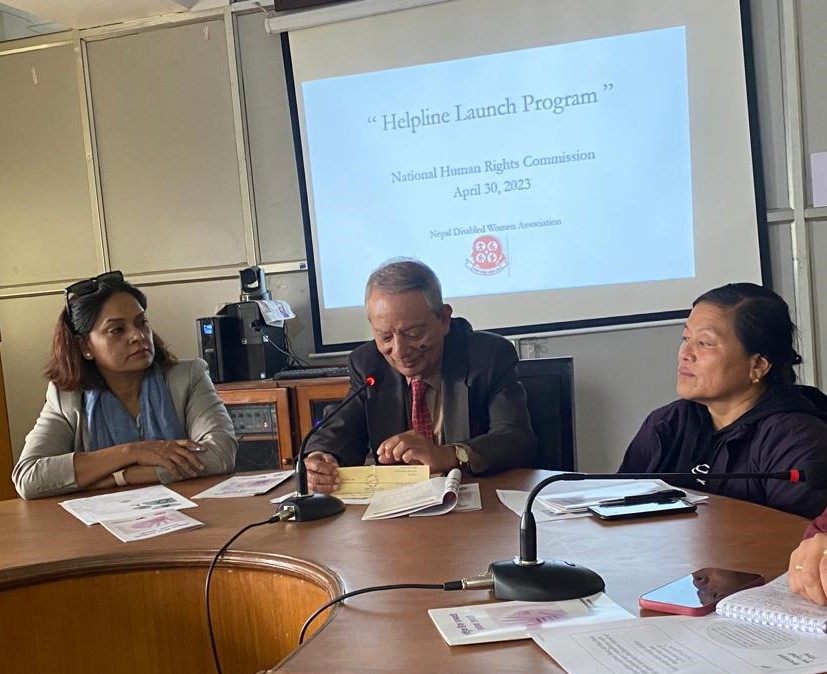 Nepal Disabled Women Association (NDWA) has started a helpline service with the aim of reducing gender based violence and providing access to justice for women and girls with disabilities affected by GBV. National Human Rights Commission’s Chairperson Top Bahadur Magar announced the helpline number. NDWA has started a toll-free helpline number 9801571225 with the aim of providing access to justice for women and girls with disabilities affected by gender based violence.