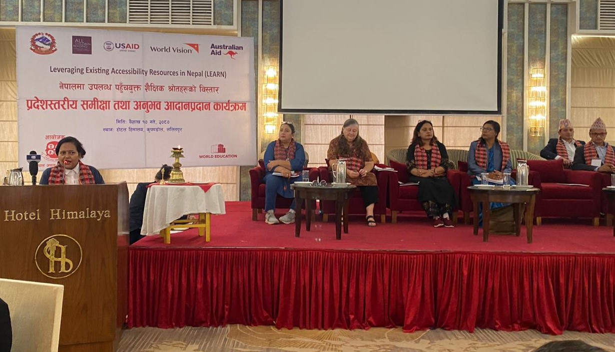 Nepal Disabled Women Association (NDWA) organized a provincial level consultation program to review the activities and exchange experiences under the Leveraging Existing Accessibility Resources in Nepal (LEARN) project in Nepal. This event was organized to discuss an activities and achievements of the LEARN Project, which is run with the aim of finding the learning limitations of children with disabilities and struggling in learning to help achieve equal learning through high and low technology.