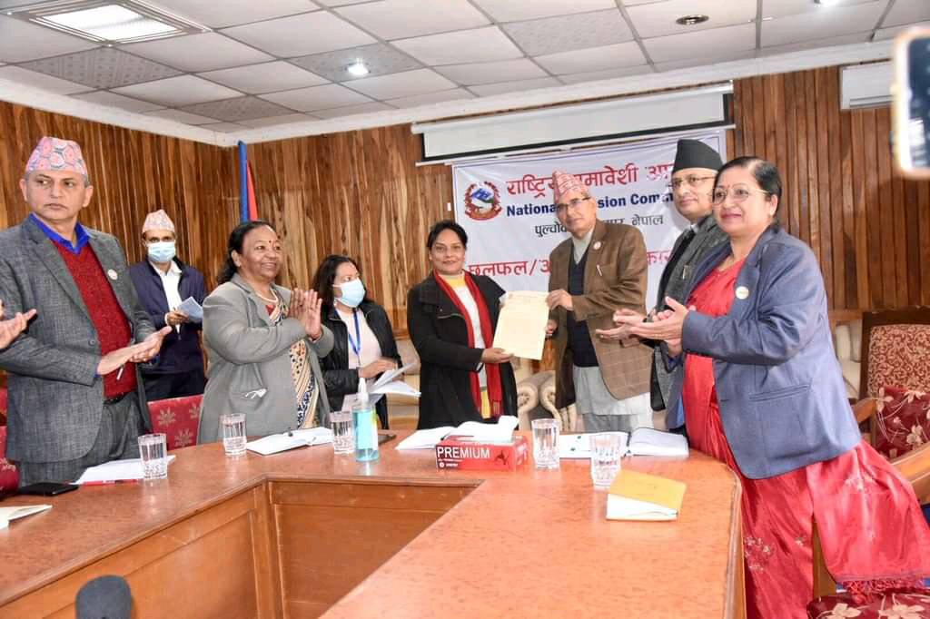 A team led by Nepal Disabled Women Association, including the National Federation of the Disabled – Nepal and representatives of the organization of persons with disabilities and journalists handed over a memorandum to the Hon’ble Chairman of the Commission, Dr. Ram Krishna Timilsena and other honorable members of the commission as well as a member of the National Women Commission. On the occasion, the disability rights activists also put forward their demands in front of the commission. Some of the demands included appointments from the disability sector in the National Inclusion Commission as per the constitution, review of election policy, ensure inclusion in all state appointments, monitoring of initiatives for inclusion in all state appointments, mandatory reservation of women with disabilities within the 33% women participation, setting up a disability desk in the commission, advocacy initiatives to be taken for management of disability reservation in the local level elections in National Election Commission and other parties.