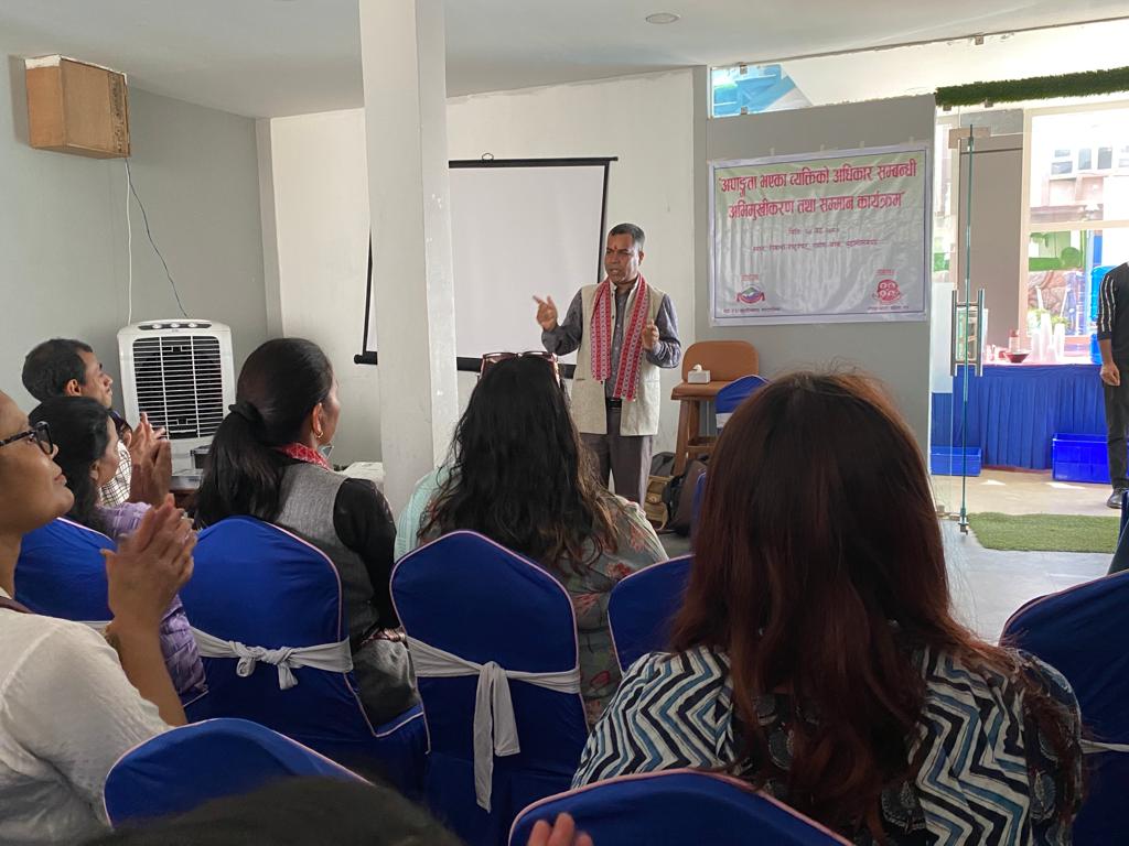 बुढानीलकण्ठ नगरपालिका वडा नम्बर ६ को आयोजना र नेपाल अपाङ्ग महिला संघको संयोजनमा बुढानीलकण्ठ नगरपालिका वडा नम्बर ६ मा “अपाङ्गता अभिमुखीकरण तथा सम्मान” कार्यक्रम सम्पन्न भयो । उक्त कार्यक्रममा बुढानीलकण्ठ नगरपालिका वडा नम्बर २, ६ र ८ बाट ३२ अपाङ्गता भएका व्यक्तिलगायत ५० जना सहभागी थिए ।