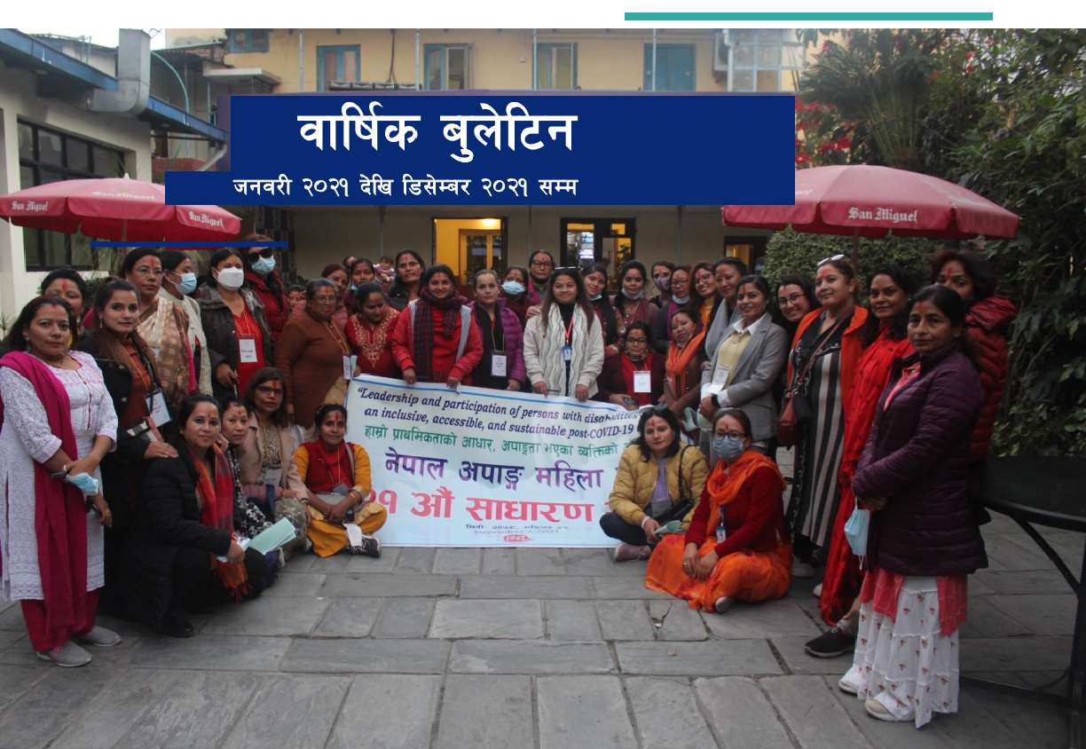 यो वार्षिक बुलेटिनमा नेपाल अपाङ्ग महिला संघले सन् २०२१ जनवरीदेखि डिसेम्बरसम्म सञ्चालन गरेका अभियानहरू र गतिविधिहरूको छोटो विवरण समेटिएको छ।